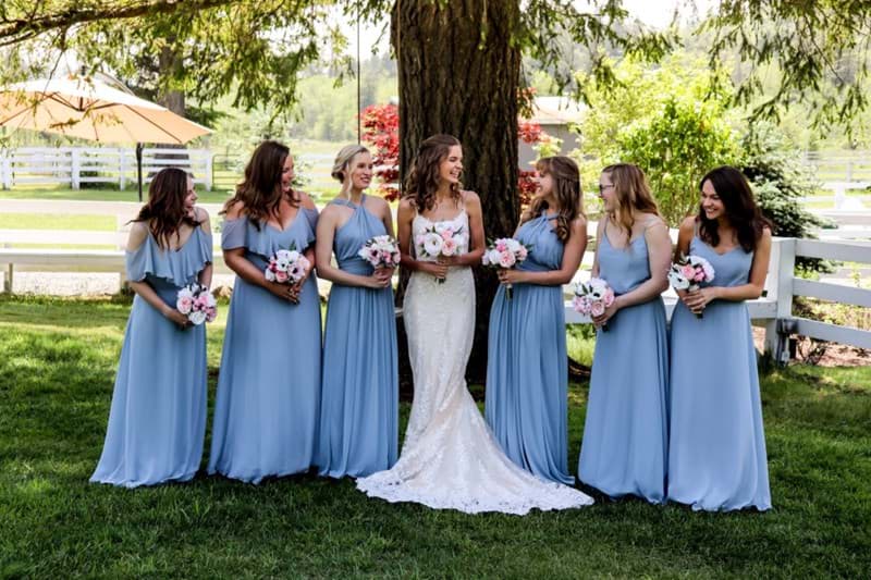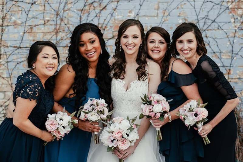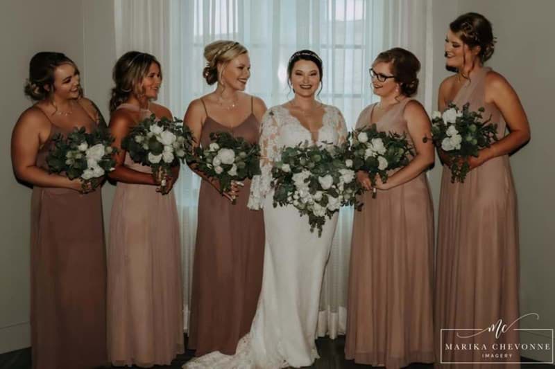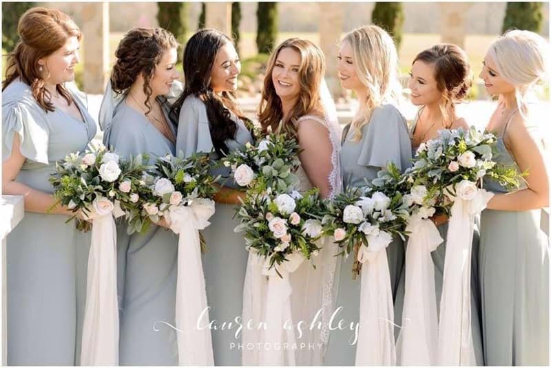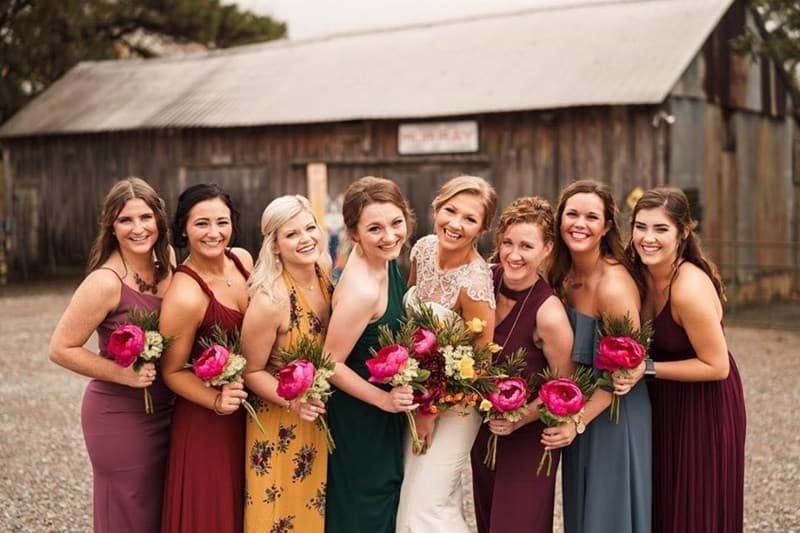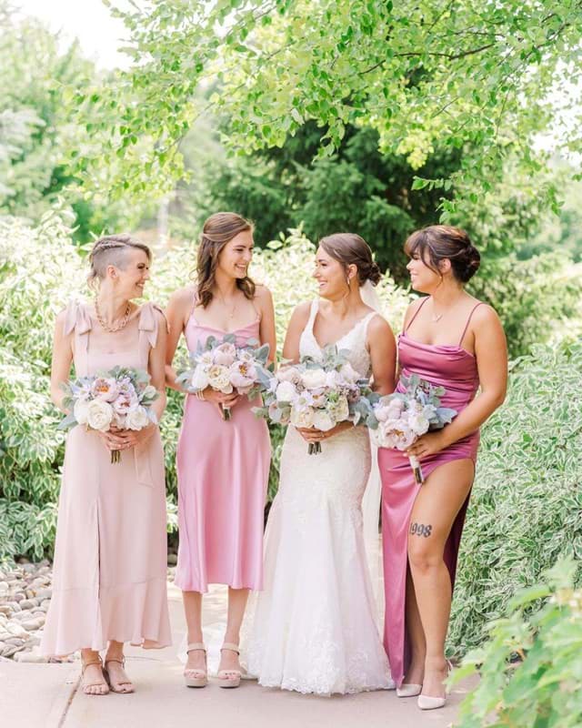 Two of the greatest decisions ever: no uniform bridesmaid dresses and RENTING our spectacular flowers!