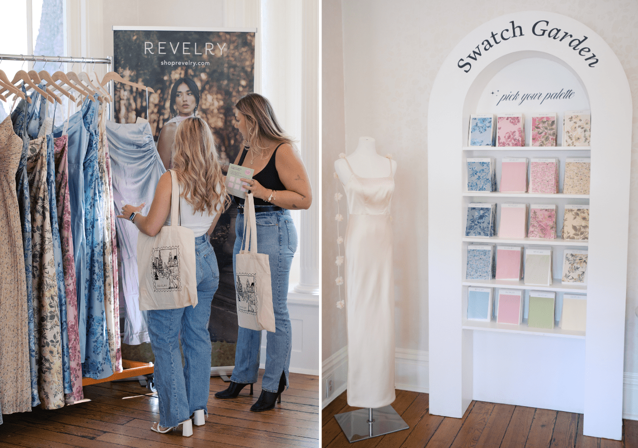 Revelry wowed attendees with a showcase of their newest styles and prints, complete with a charming swatch garden where guests could select and take home their favorite fabric samples. The best part? Guests were able to mix and match trending bridesmaid dress combinations with flower IRL. A wedding planning dream come true!