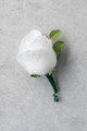 The classic white rose bridal bouquet is a traditional round nosegay bouquet featuring a limited variety of florals for a classic design. The bouquet features all white roses and hydrangea. Premium silk florals.