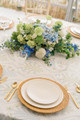 Lush Florals: Gorgeous garden roses and ranunculus, paired with wild wisteria, create a lush floral arrangement