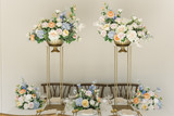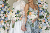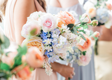 Roses, hydrangeas, ranunculus, and larkspur bring soft texture and subtle movement. With minimal greenery, the florals take center stage—delivering a polished, sophisticated look from bouquets to grand installations.