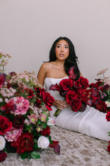 The Stella Collection captures the essence of passionate romance through its luxurious mix of scarlet roses, burgundy calla lilies, and layered peonies. Each piece tells a story of intensity and allure — perfect for the couple unafraid to make a statement.