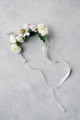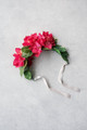 The Nina dog collar features dusty lavender and rust ranunculus, accented with dark plum apple blossom spray. It is designed using a thin silk ribbon that allows it to be adjustable. Premium silk florals.