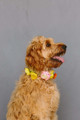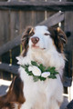 This was very cute for my dog to wear since she was the “flower girl” in our wedding. Easy to tie around her neck and she didn’t mind wearing it at all. We used a slip lead to avoid another collar and it looked great in photos!
