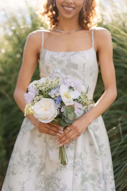 The Taylor Collection is made up of gorgeous antique beige peonies, lavender scabiosa, and a variety of ivory colored roses. You'll find hints of lavender, blue larkspur, and Queen Anne's lace among the lush silver dollar eucalyptus. This airy, romantic collection is perfect for the modern bride looking for on-trend, yet timeless wedding flowers.