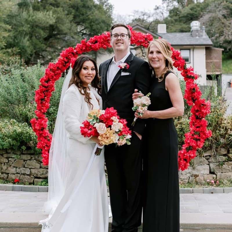 Received our photos from our Valentine's Day wedding. We used almost everything from the Gemma collection. It's really stunning in person and in photos. The Customer Service is fantastic and the boxed florals are packaged so nicely. We gave our garlands to the rental company in advance so they can zip tie them to the arch and they commented that they were really impressed that there was a sustainable company like this considering how much floral waste is in the wedding industry. I think for my petite frame I would have preferred the bridesmaid size bouquet over the bridal but that would have been my only change. I know most brides prefer the soft white bouquets but if you are a bride seeking something bold or colorful you cant go wrong with the Gemma.