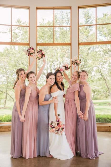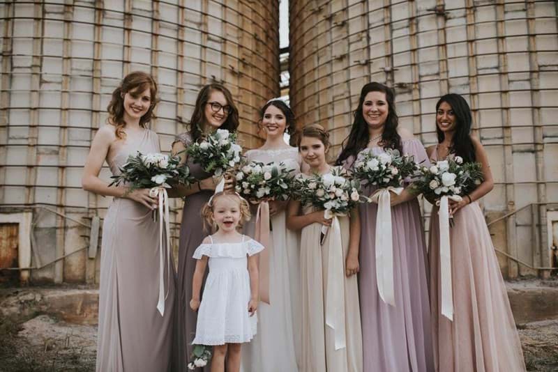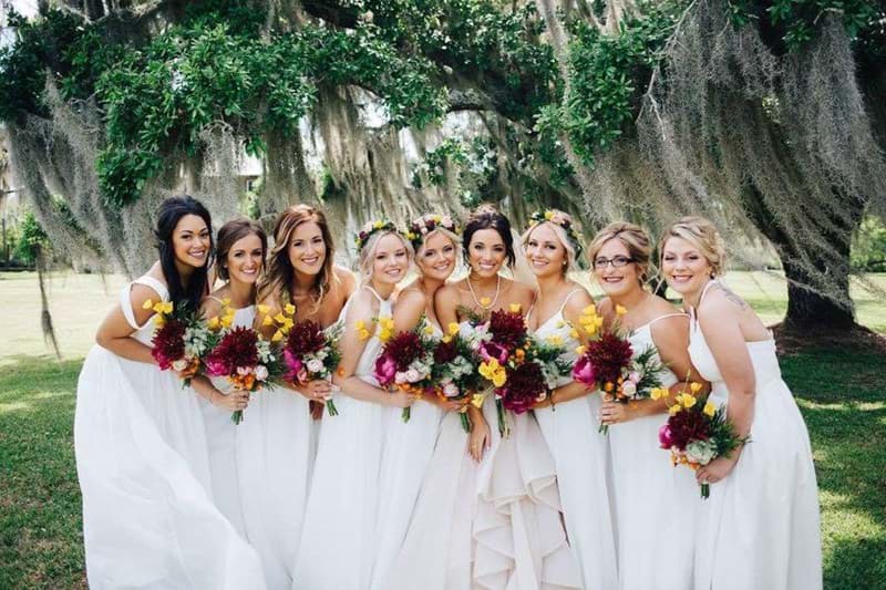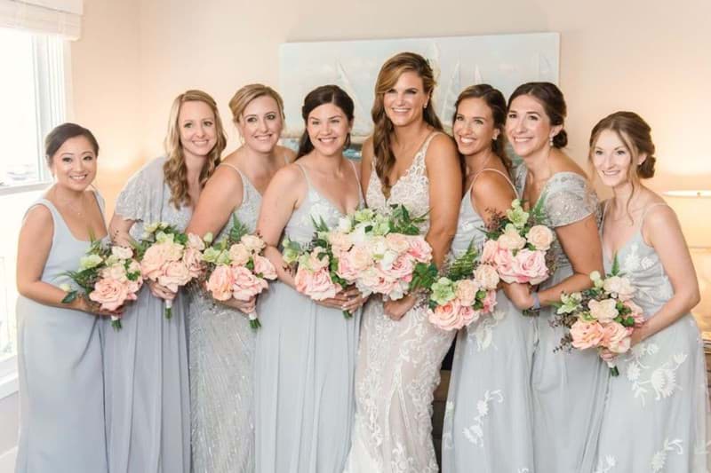 Two of the greatest decisions ever: no uniform bridesmaid dresses and RENTING our spectacular flowers!